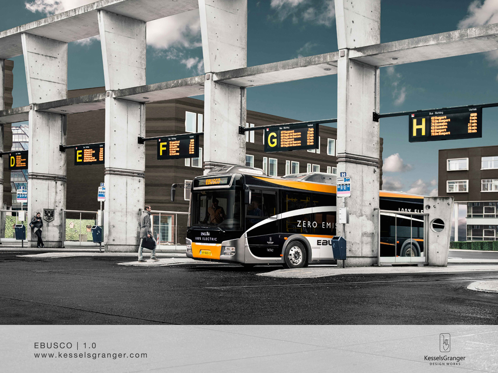 In voorbereiding voor de lancering van de 1.0 volledig elektrische stadsbus op de IAA te Hannover heeft Ebusco KesselsGranger DesignWorks opdracht gegeven om een knallende livery te ontwerpen.