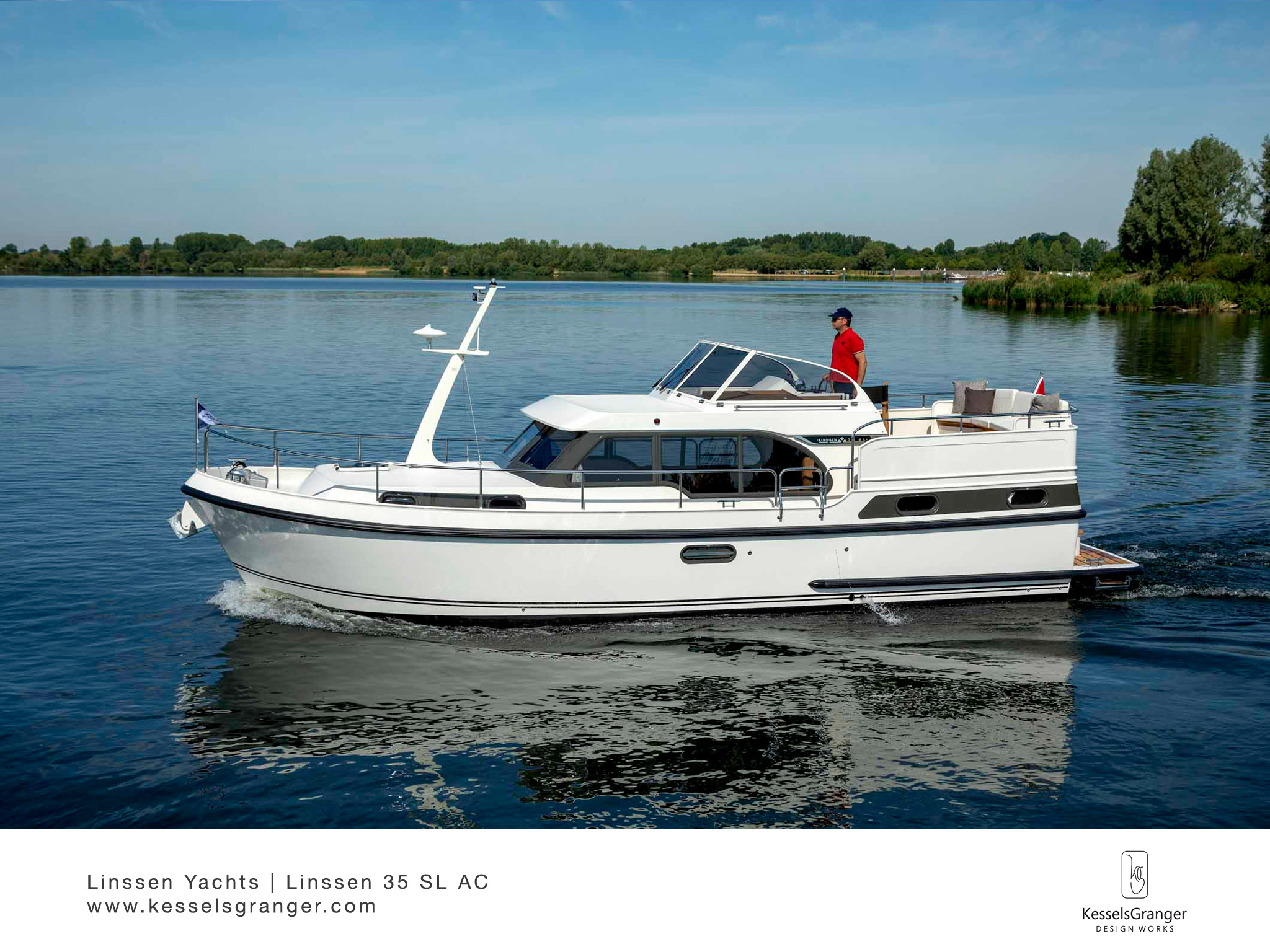 Moderne lijn: stalen jacht marktleider Linssen Yachts biedt een nog grotere variëteit aan klanten met de nieuwe SL-serie. Het Linssen Yachts Prototyping & Engineering Team en de stylingspecialisten van KesselsGranger DesignWorks gevestigd in het Belgische Genk, waarmee het gerenommeerde bedrijf uit Maasbracht al enige tijd succesvol heeft samengewerkt, zijn verantwoordelijk voor de succesvolle visuele uitstraling van de nieuwkomer.