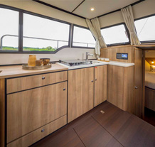 De zeeg van het schip wordt geaccentueerd door een PVC stootrand, wat resulteert in een strak en doelgericht uiterlijk. De afwerk elementen van het berghout zijn in het zwart afgewerkt voor een optimale integratie.