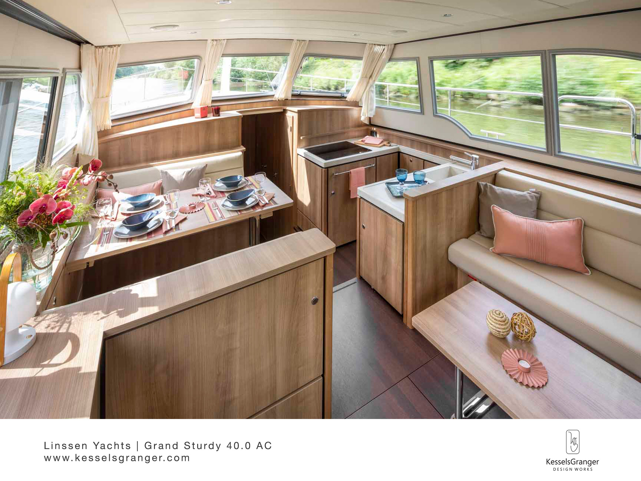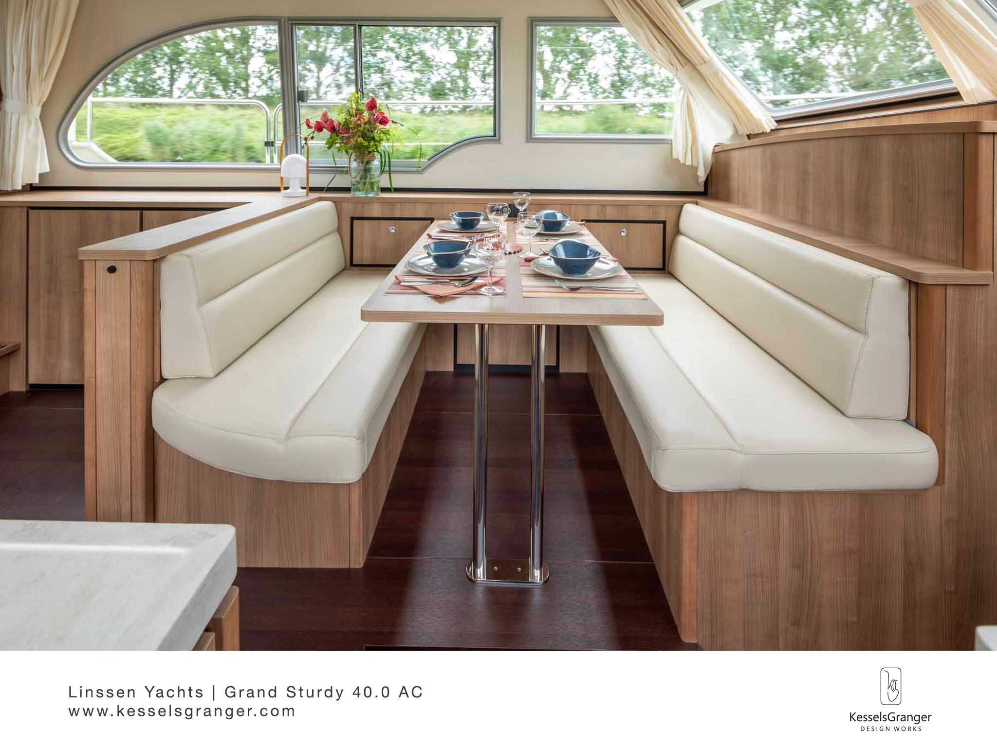 Licht en ruimte, dat zijn de sleutelbegrippen in de Intero-stijl dat Linssen Yachts in samenwerking met KesselsGranger DesignWorks hebben ontwikkeld. Na de Grand Sturdy 30.0 en de 35.0 is de 40.0 AC volledig vernieuwd.