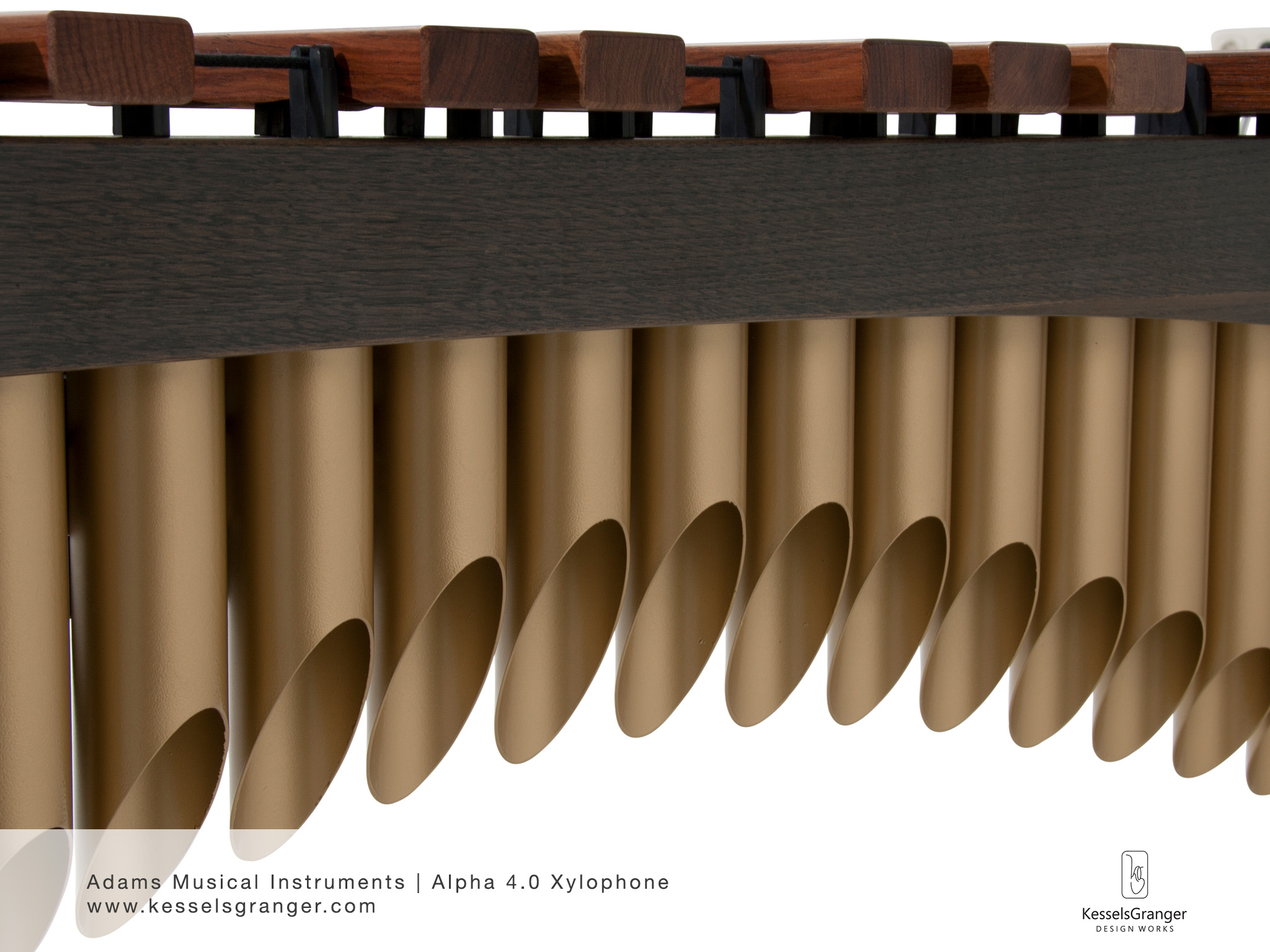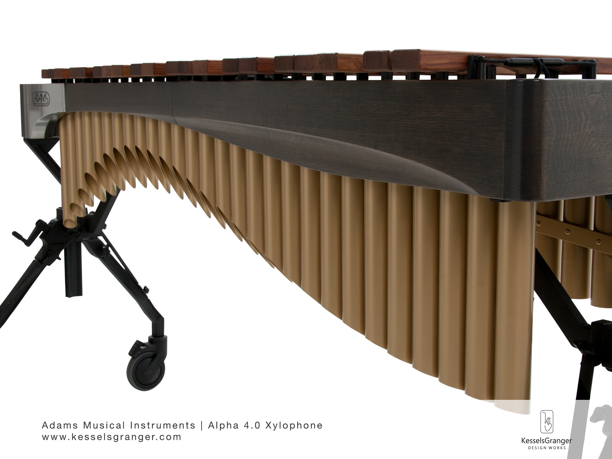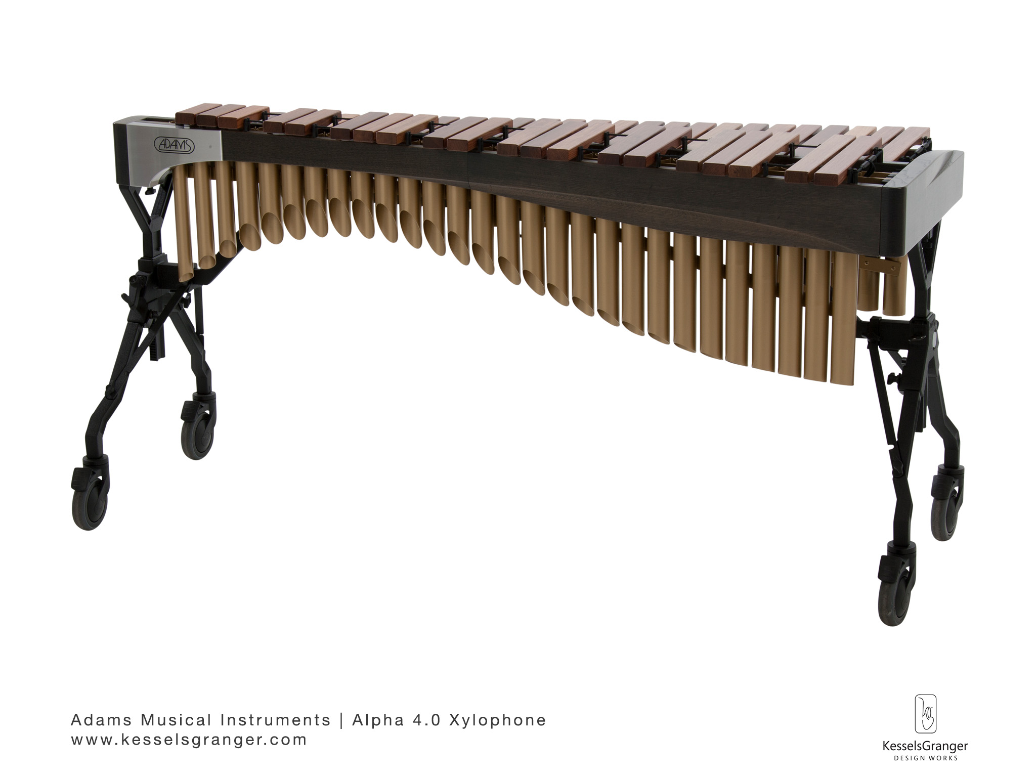 For Adams Musical Instruments, KesselsGranger DesignWorks designed the Alpha Series 4 octave xylophone. The styling is inspired by the movement of music and modern architecture.