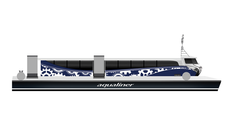 Aqualiner catamarans sail from Rotterdam to the RDM Campus / HTS and IPO of Rotterdam University. KesselsGranger DesignWorks has provided a young / technical look for these special ships.