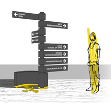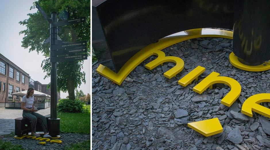 KesselsGranger designed tailor-made signposts for C-mine in collaboration with B+ Archtecten and Folkersma. The C-mine logo is incorporated into the C-mine logo.