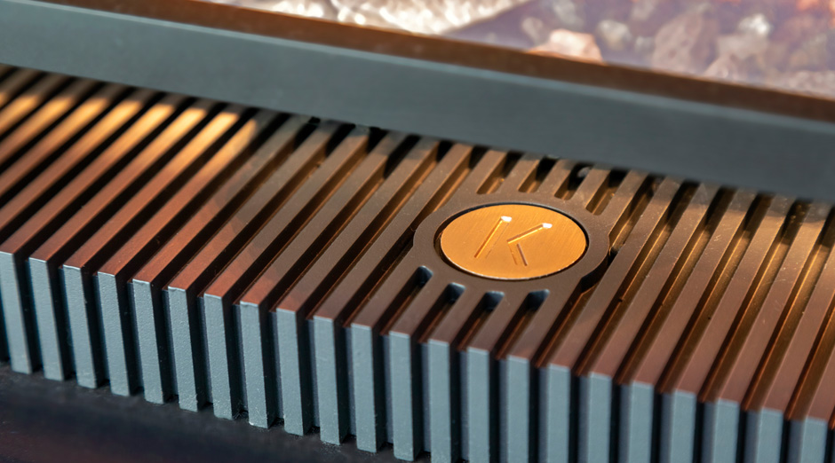 The Kalfire ‘K’ is integrated in a characteristic coin that is inlayed in the base plate. The concept behind the new design was to create a quality signature that was embedded in the baseplate. A mark of quality that was unmistakably Kalfire, adding depth and reflecting the innovative character of Kalfire Fireplaces, without attracting unnecessary attention. The inlay of and distinctive coin also gives added the flexibility to create special editions with exclusive material finishes, personalizing your own fire.